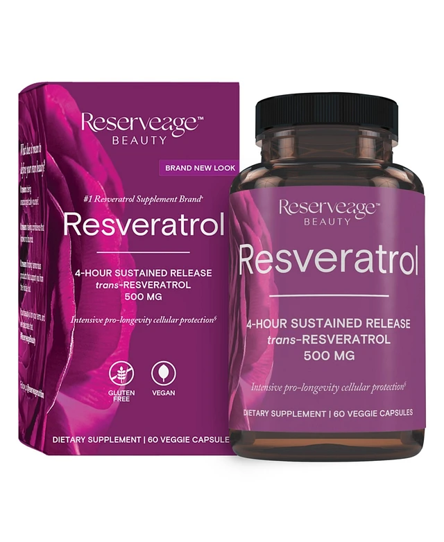 Reserveage, Resveratrol 500 mg, Antioxidant Supplement for Heart and Cellular Health, Supports Healthy Aging, Paleo, Keto, 60 Capsules