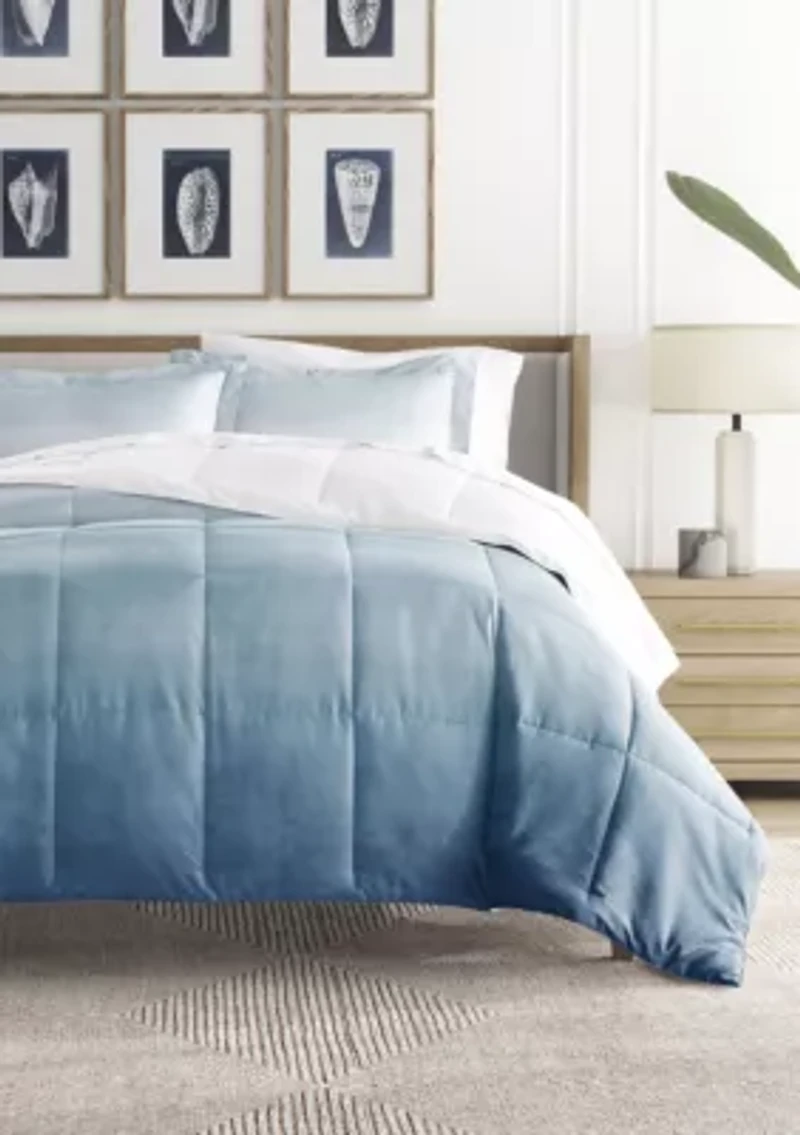 Reversible Ocean Waves Patterned Ultra Soft Microfiber Down-Alternative Comforter Set