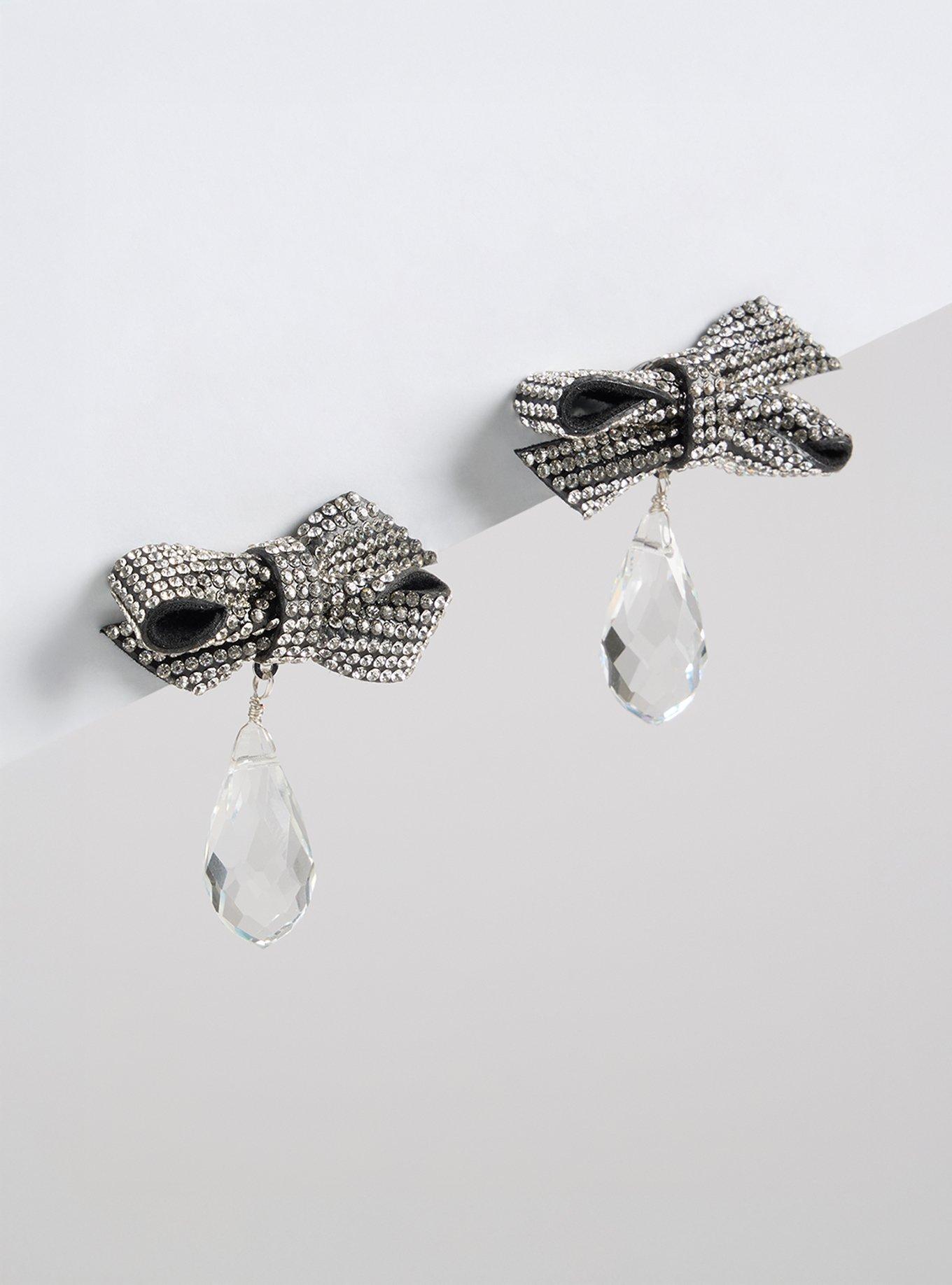 Rhinestone Bow Drop Earrings