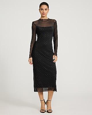 Rhinestone Embellished Mesh Midi Dress