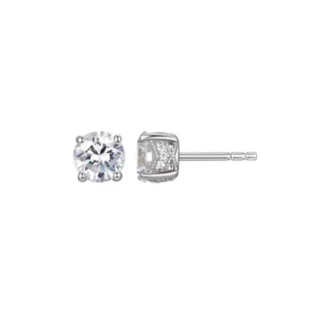 Rhodium Plated Sterling Silver Solitaire Moissanite Earrings