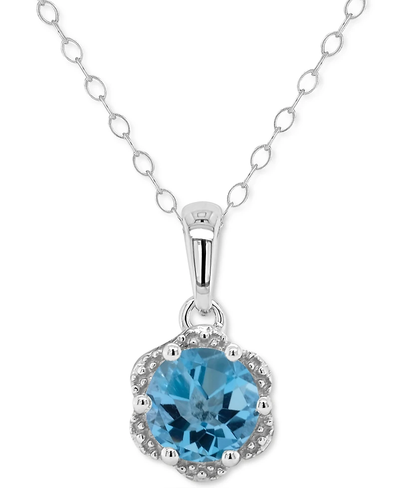 Rhodolite Garnet Solitaire Scalloped Edge 18" Pendant Necklace (1 ct. t.w.) Sterling Silver (Also Citrine, Peridot, White Topaz, Blue & A