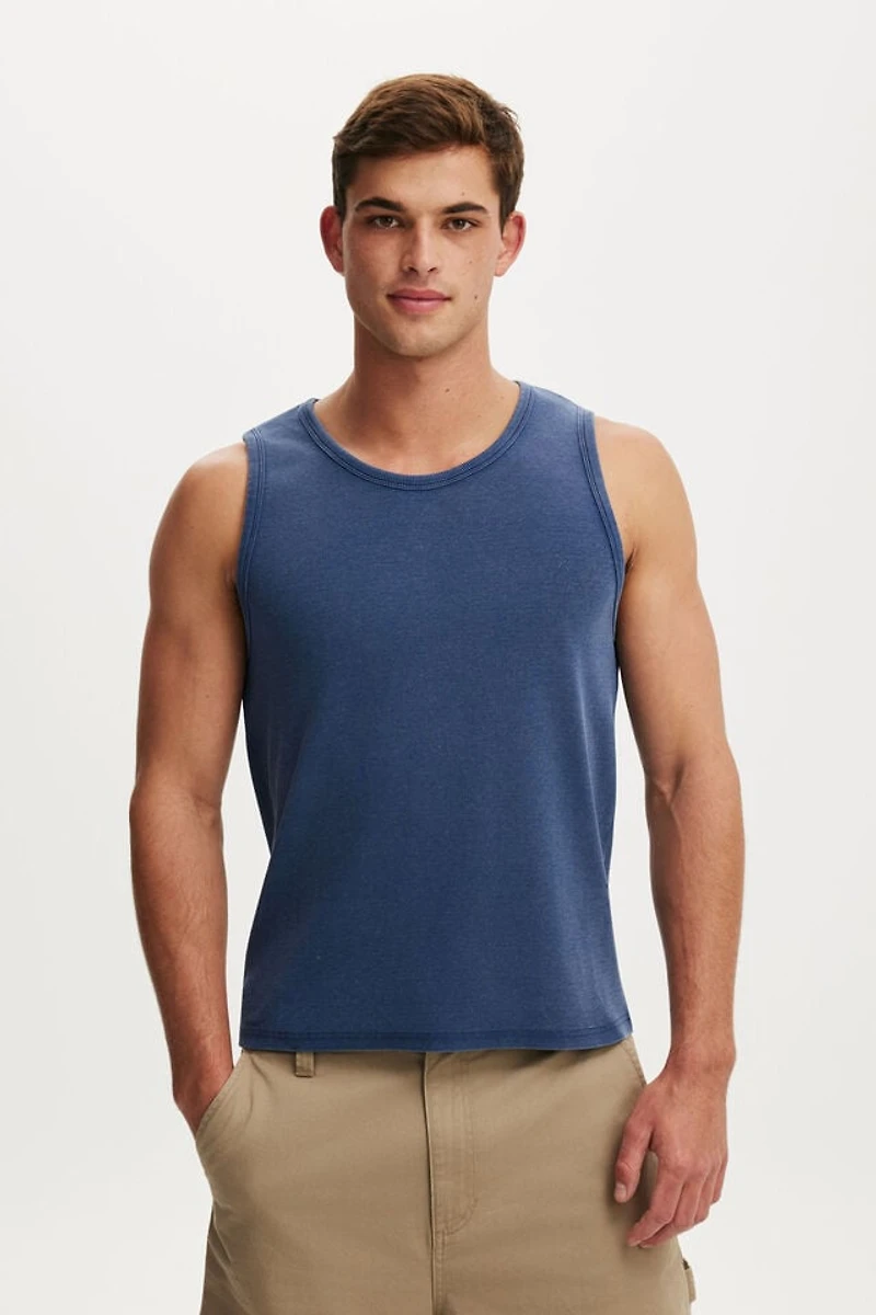 The timeless Rib Tank with a crew neck, crafted from cotton rib knit. Designed with a relaxed, sleeveless fit, cropped body length, and straight hem for a laid-back look. Finished in a true navy wash with a solid colourway.