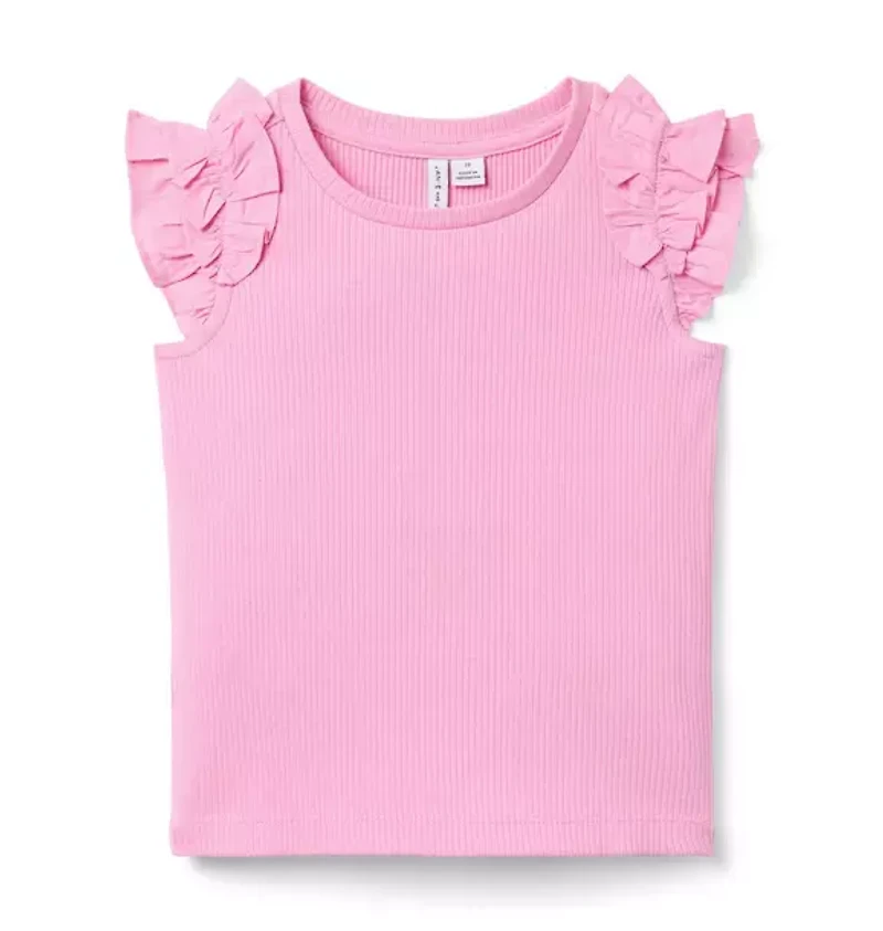 A style staple we love, our ribbed top is finished with ruffle sleeves for extra frills. 93% Cotton Rib/7% Spandex Short Sleeve Machine Washable; Imported