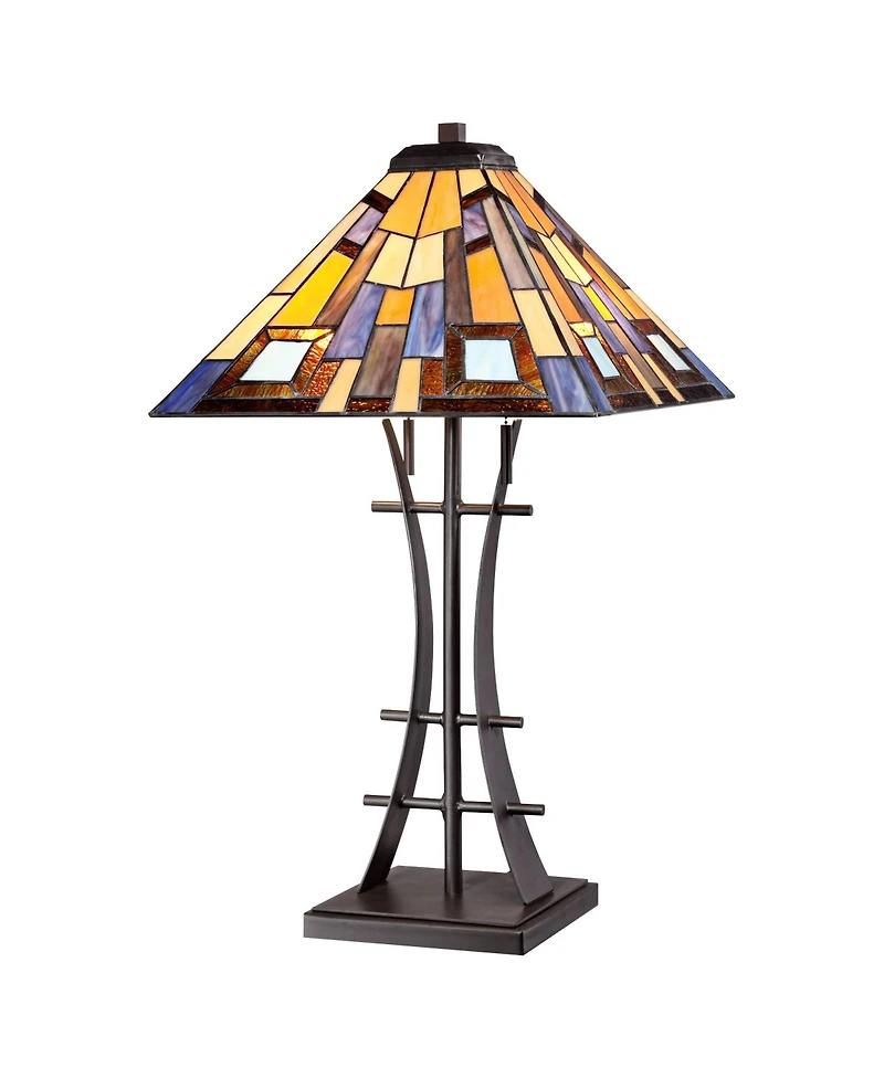 Robert Louis Tiffany Jewel Tone Mission Style Table Lamp 27" Tall Iron with Tabletop Dimmer Art Glass Shade for Bedroom Living Room Bedside in Franklin, TN