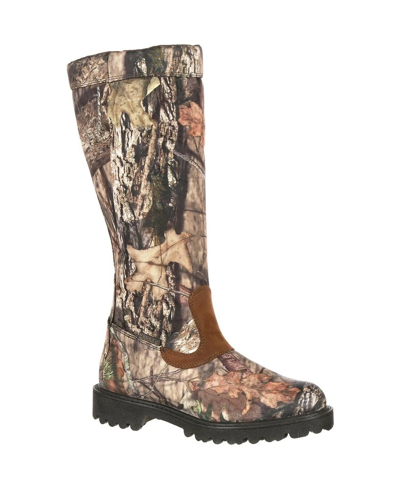 Hunt in a snake boot that protects you from snake bites and keeps your feet dry. Get the Rocky Low Country Waterproof Snake Boot in Mossy Oak Break-Up Country camouflage. This Rocky snakeproof boot protects you from bites of North American snakes. If you are hunting or walking in areas where snakes are likely to be present, this is a great boot to have. With this 16-inch boot, you get 16 inches of snake protection. While protection alone would make this a good snake boot, Rocky also gives you a waterproof boot. You can go where you want, through mud, water and swampy conditions, without concern about wet feet. Rocky has you covered. Guaranteed. This is a camouflage boot featuring Mossy Oak Break-Up Country camo. You can have a waterproof camouflage snake boot. Some tall boots can be difficult to get on and off, but not this footwear. This hunting boot has a side zipper inside that makes it easy. Other boot features include an Eva footbed and an Eva/rubber outsole with good traction.