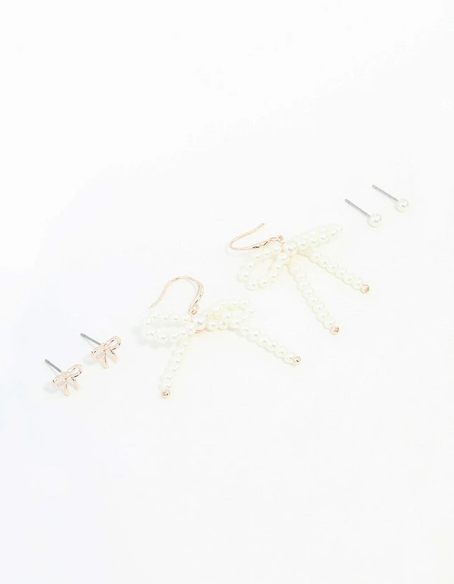 Rose Gold, Pearl & Bow Earrings 3-Pack