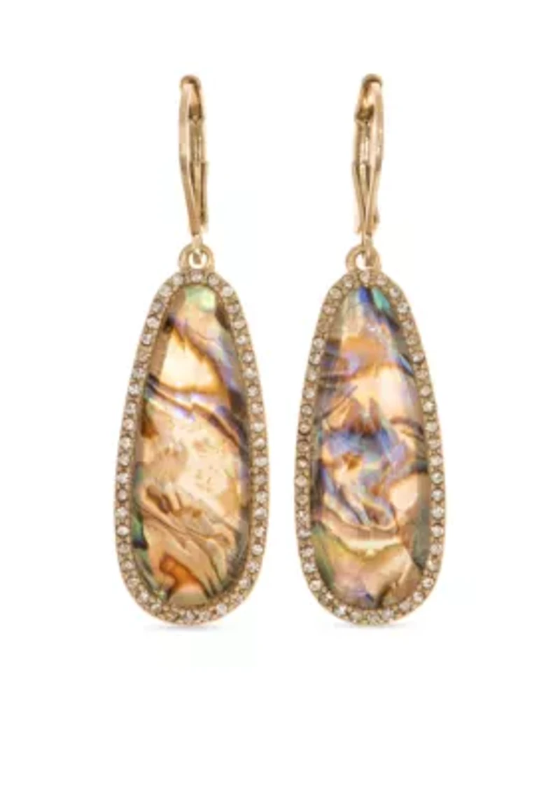 Sparkling clear crystals surround sleekly polished pink oval stones to create a stunning style for these gorgeous drop earrings. Rose gold-tone metal accents the eye-catching design and form the closure, adding a touch of elegant shine. These must-have accessories elevate any ensemble and are essential for your collection. Lever back closure Polished finish Imported Product Specifications 1.8" L x 0.54" W Material & Care Brass post Rose gold-tone metal Clean with a soft cloth