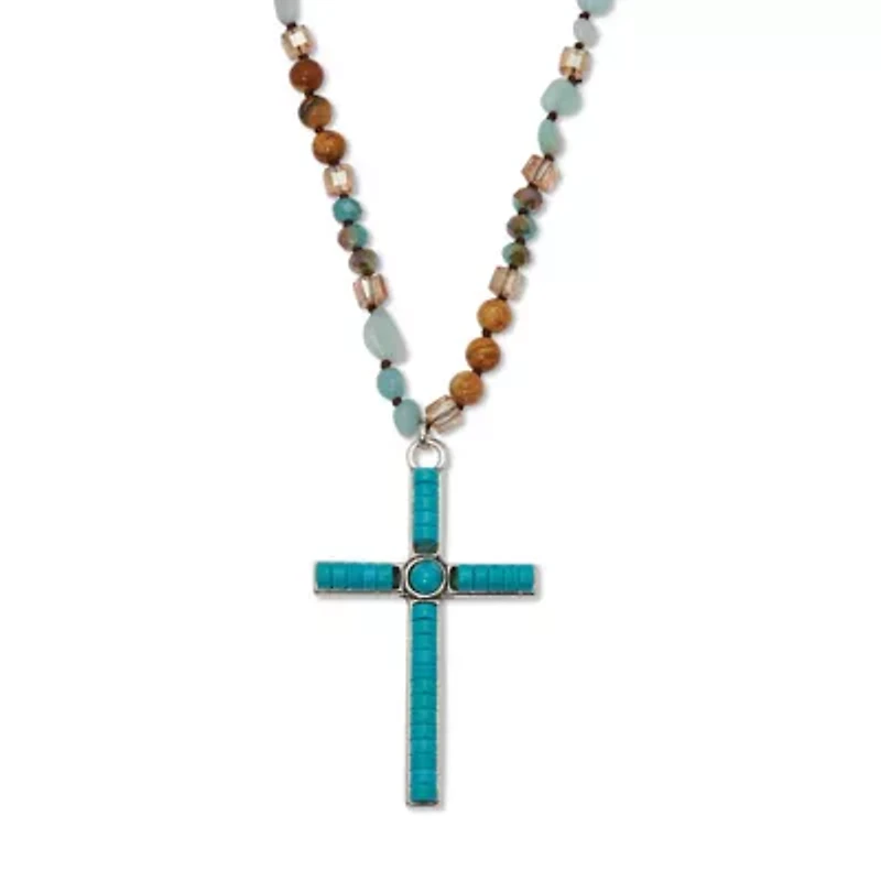 Round Genuine Turquoise Silvertone Beaded Cross Necklace 34-inch in Franklin, TN