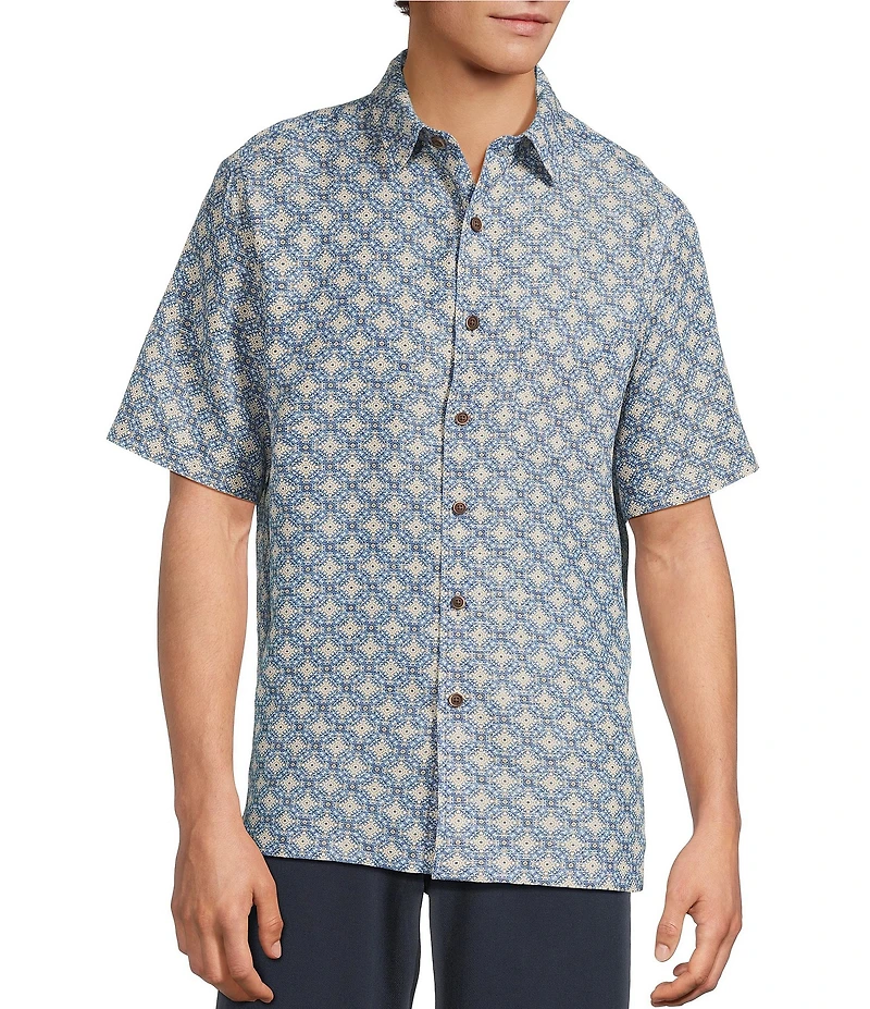 Roundtree & Yorke Big & Tall Short Sleeve Tile Geometric Print Polynosic Sport Shirt in Franklin, TN