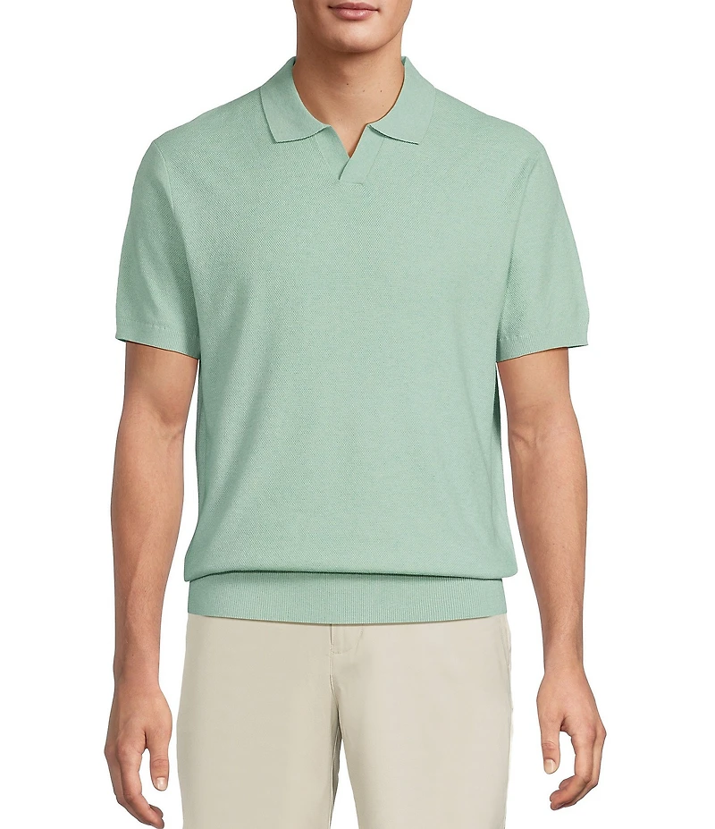Roundtree & Yorke Short Sleeve Solid Textured Johnny Collar Knit Shirt