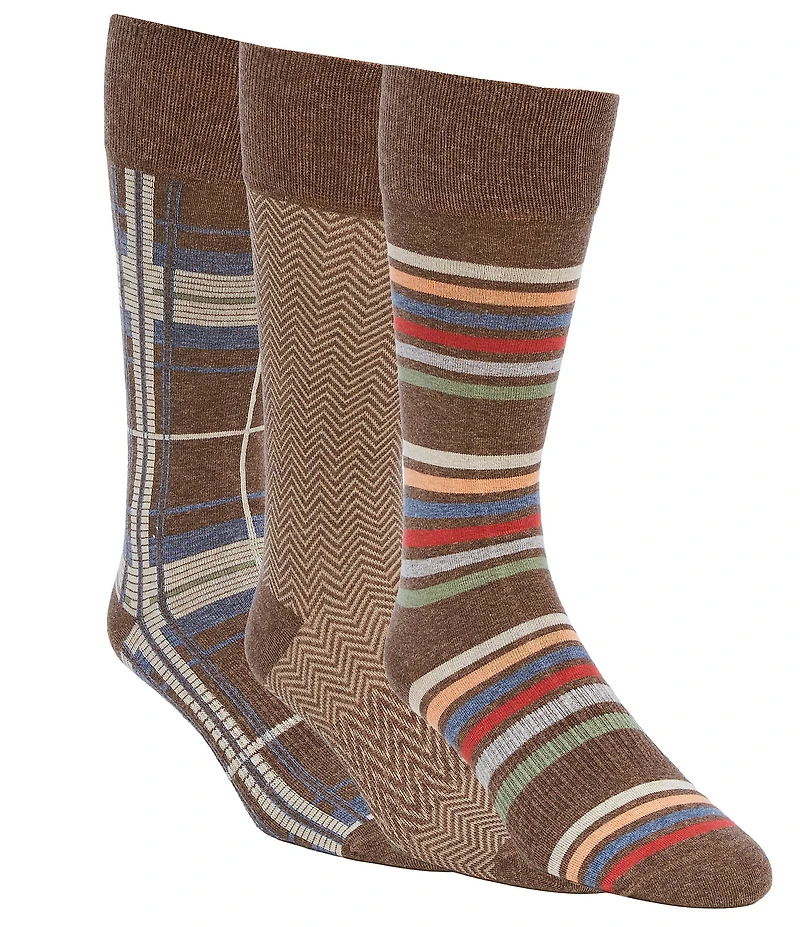 Roundtree & Yorke Square/Plaid Crew Dress Socks 3-Pack