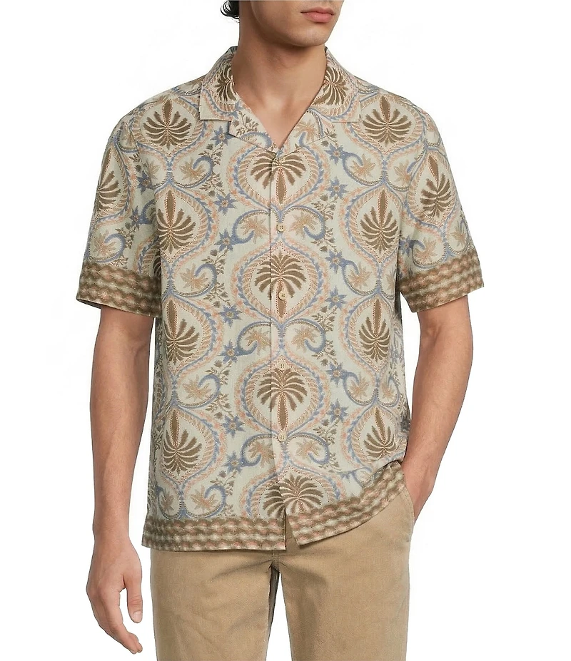 Rowm Short Sleeve Hemp Palm Print Button Front Shirt