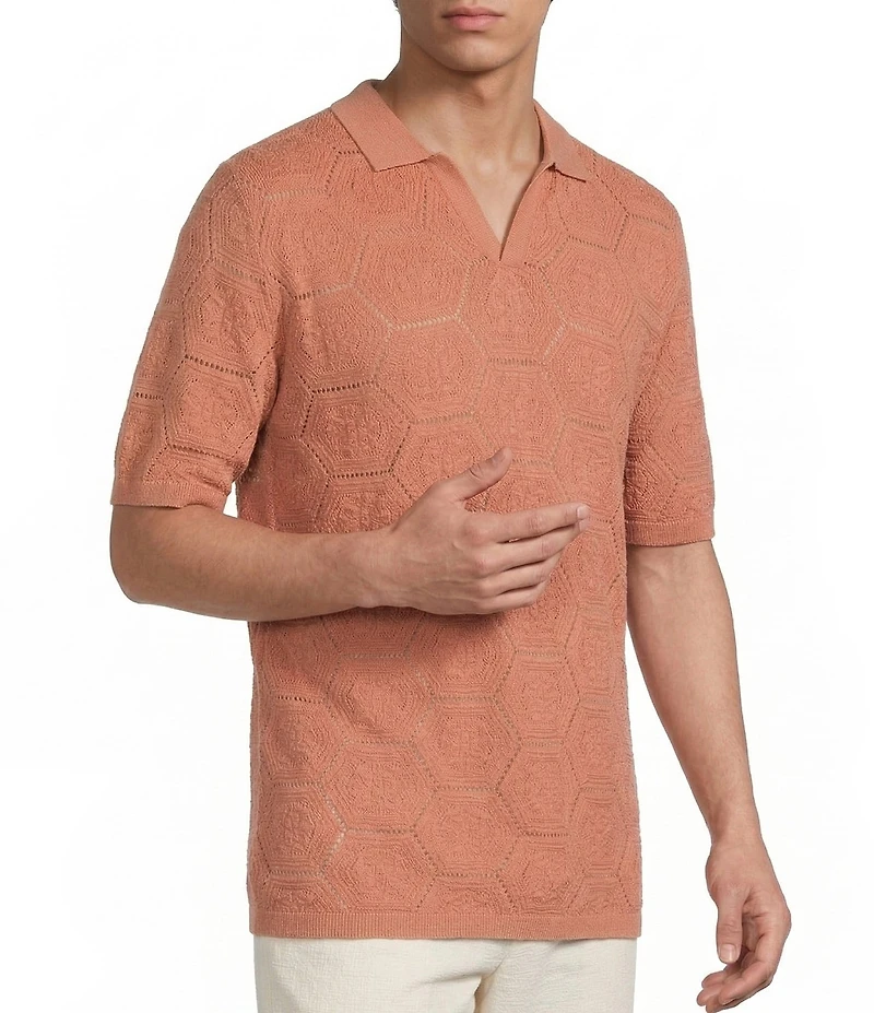 Rowm Short Sleeve Solid Jacquard Johnny Collar Knit Shirt