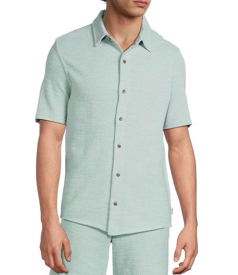 Rowm Short Sleeve Textured Solid Button Front Shirt