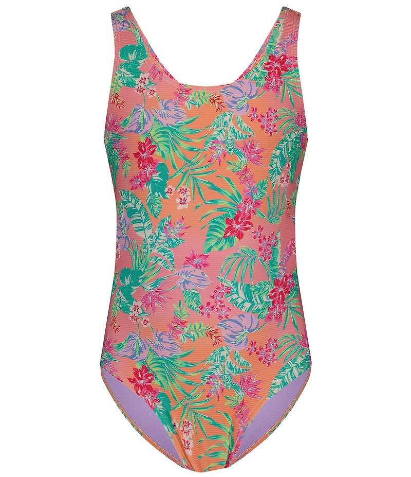 From Roxy, this swimsuit features: Allover tropical/floral print Scoop neckline Shoulder straps Cutout back Pullover styling Regular fit Polyester/elastane with ribbed texture Machine wash/line dry Imported.
