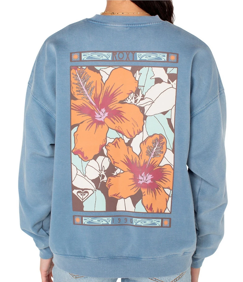 From Roxy, this sweatshirt features: Round neckline Long sleeves "Roxy" logo on the front Large rectangular-shaped graphic with tropical flowers on the back Pullover styling Oversized fit Cotton/recycled cotton/recycled polyester fleece Machine wash/tumble dry Imported.