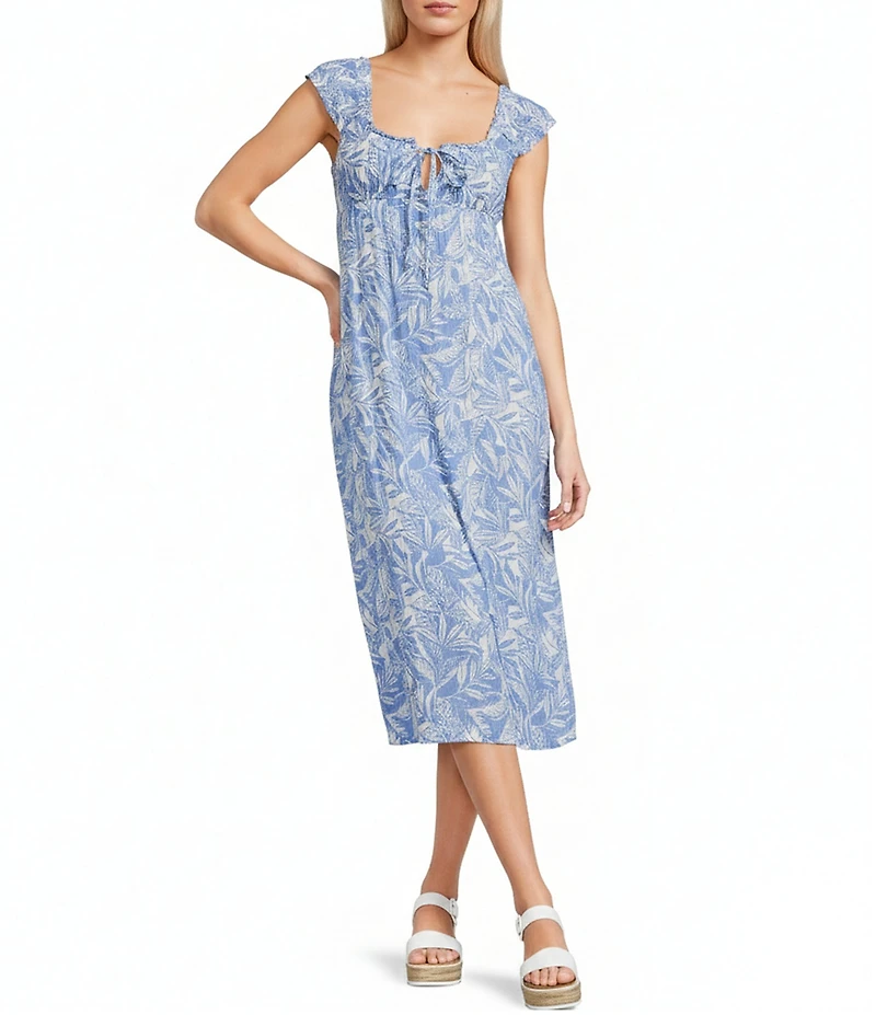 Roxy Sweet Pea Palm Printed Peasant Midi Dress