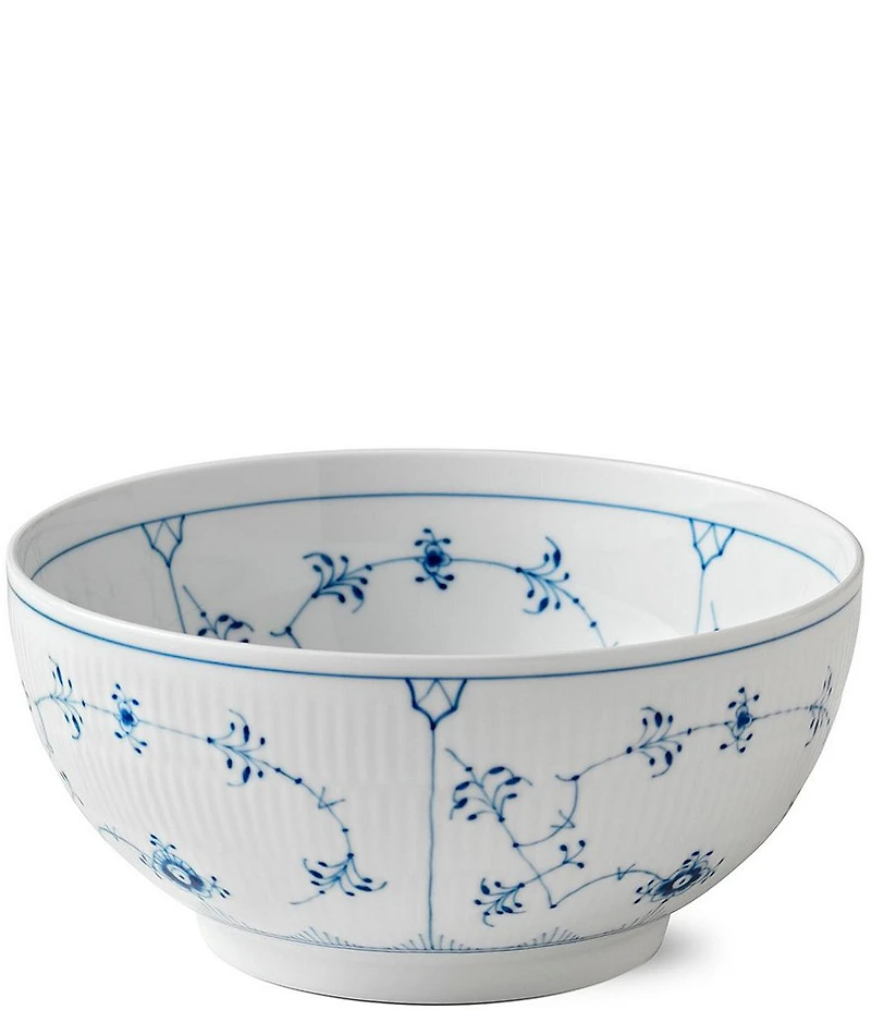 From Royal Copenhagen, this bowl features: Blue Fluted Plain captivates with its classic versatility. Its graceful decoration emphasizes the delicate form and craftsmanship of each piece. Blue Fluted Plain is a timeless service; it can be used every day, as the basis for a unique collection of Royal Copenhagen porcelain, mixing the traditional with the modern. Eternally classic. This simple porcelain bowl is both functional and elegant. The bowl is beautifully decorated with a Blue Fluted pattern and this distinctive classic design makes it a perfect element for every room in your home. Porcelain Blue Fluted Plain Collection Design by: Arnold Krog Elegant pattern Hand-painted Fluted design with a delicate floral motif approx. 9.5" diameter capacity approx. 3.25 quart Dishwasher and microwave safe Imported.