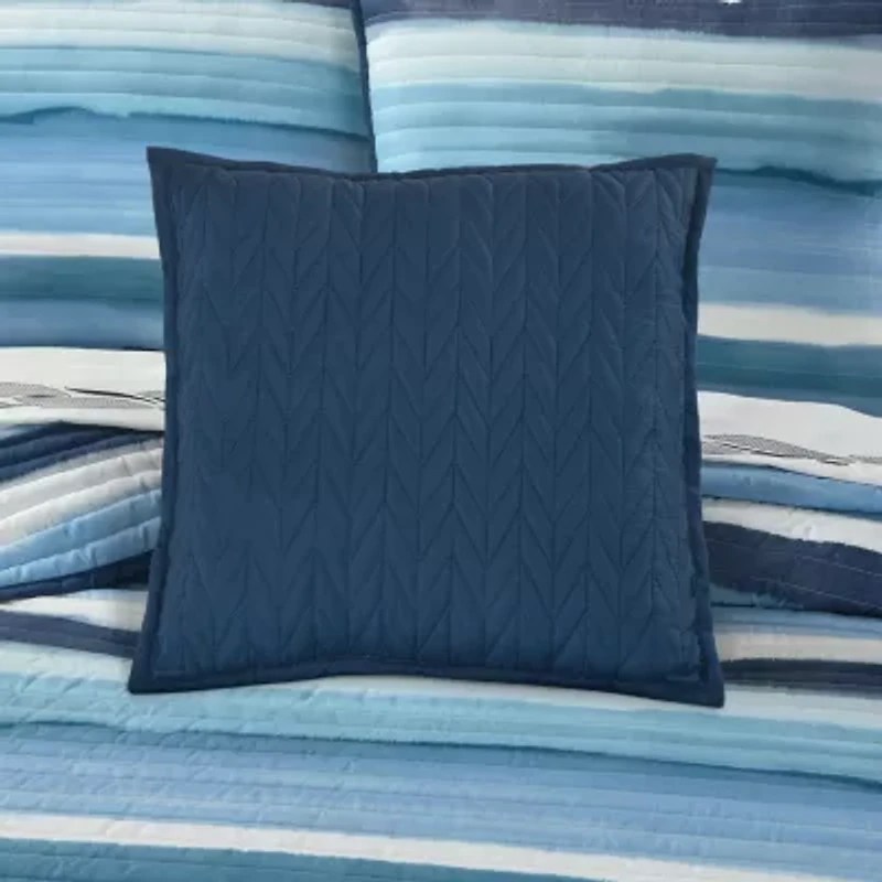 The balboa 16-inch square decorative throw pillow features a solid ocean blue color with a herringbone quilted design. This transitional yet versatile pillow is finished with self-fabric piping and layers beautifully with the balboa bedding ensemble and add window treatments to complete the look.