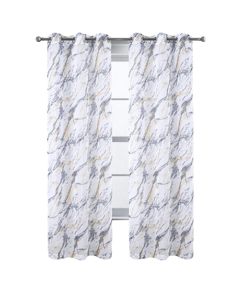 Rt Designers Collection Marble Grommet Metallic Sheer Printed Doily Curtain Panel 54" x 84