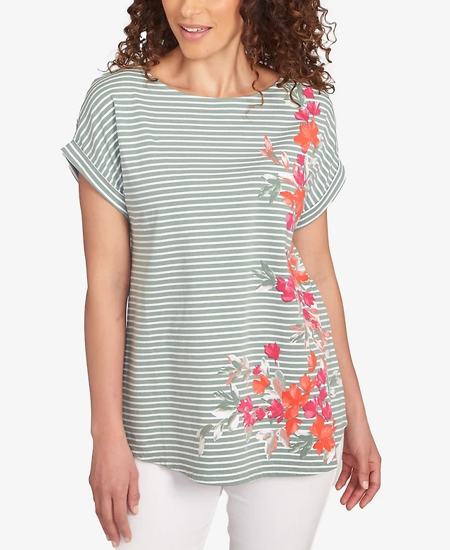 Ruby Rd. Petite Floral Stripe Jersey T-Shirt