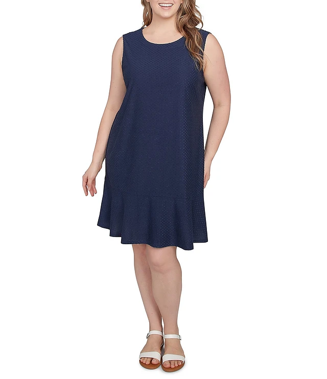 Ruby Rd. Plus Size Swiss Dot Scoop Neck Sleeveless Tiered Hem Dress