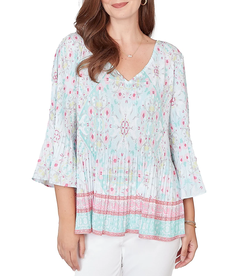 Ruby Rd. Tapestry Border Print V-Neck 3/4 Sleeve Blouse in Franklin, TN
