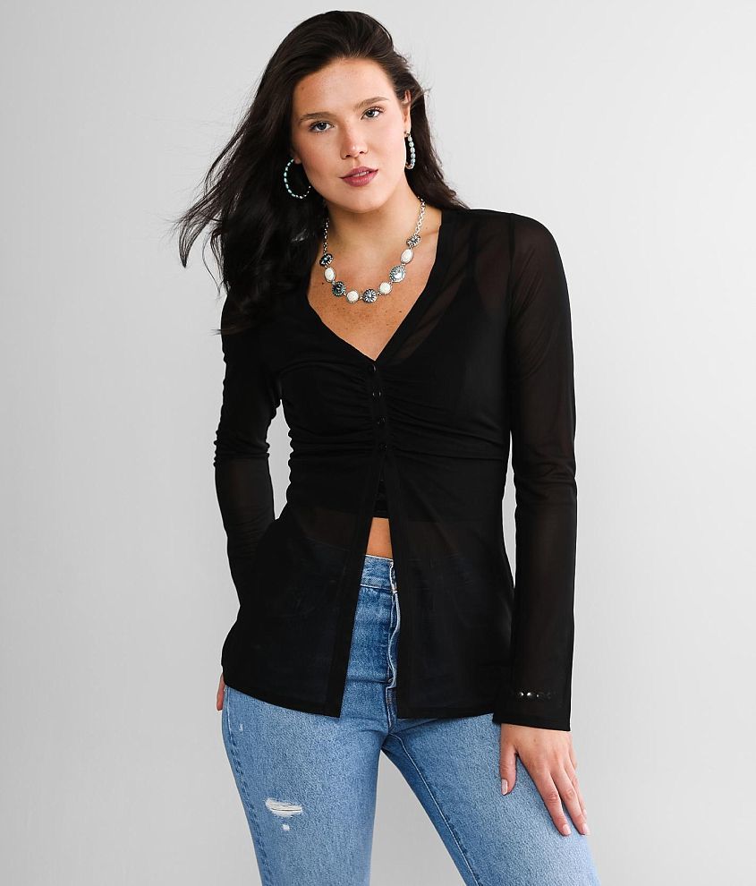 Ruched Mesh Blouse