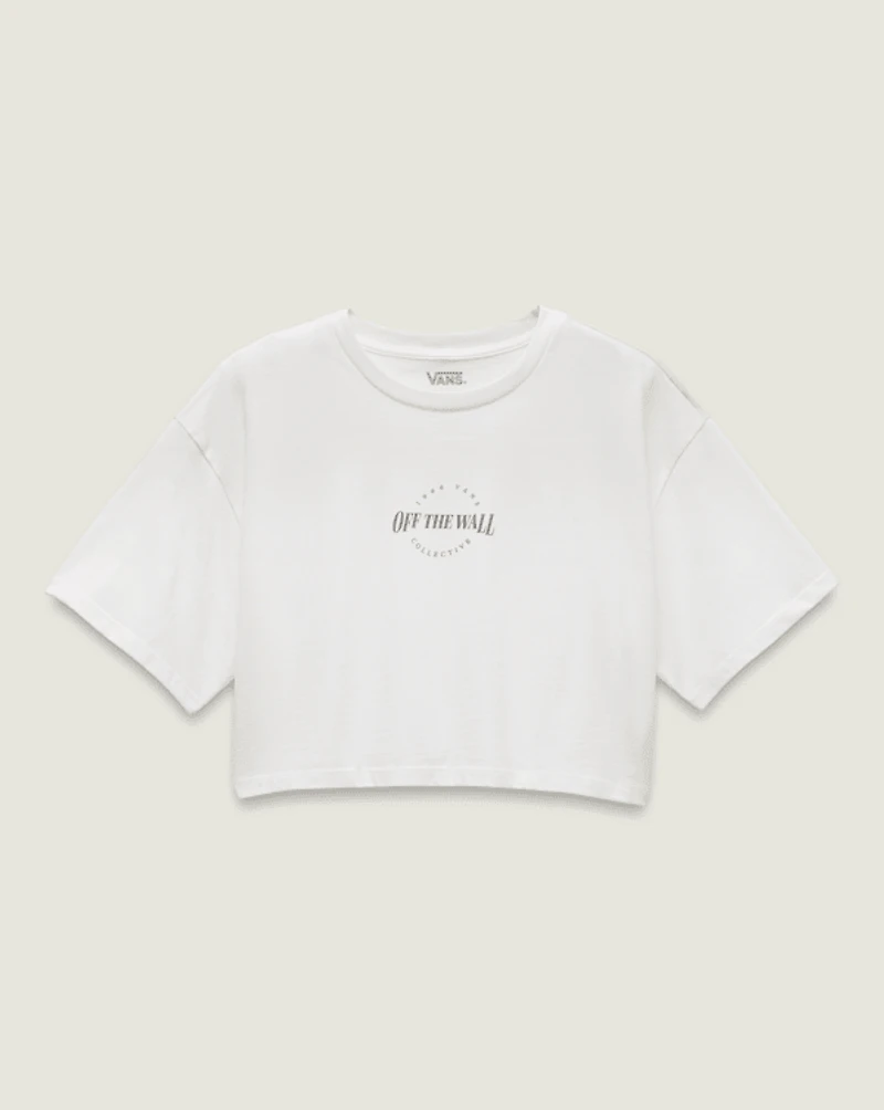Keep it uncomplicated in the Rylen T-Shirt, a relaxed crop crew neck T-shirt with a with a simple Vans® graphic showcasing heritage details.
