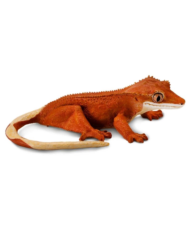 Embark on a journey into the world of reptiles with the Safari Ltd. Crested Gecko, a lifelike 5.5"" model figure. Known for the distinctive row of short spikes on either side of its wedge-shaped head, the Crested Gecko (Correlophus ciliatus) is renowned for its striking appearance. This hand-painted Crested Gecko figure mirrors the orange coloration often seen on wild geckos, with cream coloring on the underside and tail. The 1:1 scale ensures that this model is the same size as the real deal, offering an incredibly accurate representation. Every aspect of this figurine has been meticulously sculpted and painted, capturing even the tiniest details of the eyes, toes, and individual scales. The Crested Gecko is an engaging way to educate children about reptiles, their unique characteristics, and their importance in the ecosystem. By encouraging imaginative play, this model helps foster curiosity and exploration.