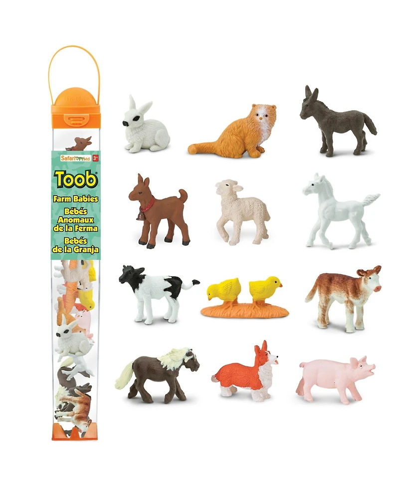 Discover the charm of life on a farm with Safari Ltd.'s Baby Farm Animals Toob! This collection includes 12 miniature baby farm animal figurines, representing some of the most adorable and important critters found in agricultural settings.From the playful corgi puppy learning to herd to the tiny chick just hatched, these figurines are individually hand-painted, showcasing each animal's unique features with incredible detail. They are not only fun for children to play with but also serve as excellent educational tools, teaching them about the roles these animals play on a farm and their different life cycles.