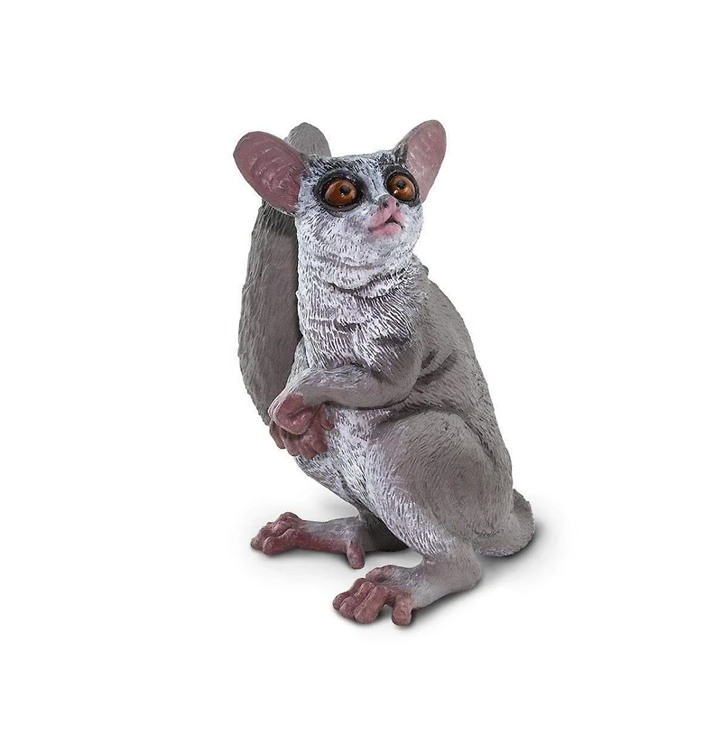 Explore the wonders of African wildlife with the Safari Ltd. Bush Baby Figurine! Hand-painted with lifelike precision, this 3.5"" model figure captures the essence of one of Africa's most intriguing nocturnal primates.Bush Babies, or Galagos, are fascinating creatures known for their large eyes, aiding them in nighttime navigation. With a curious expression and tail raised, this figurine stimulates children's curiosity about wildlife, ecology, and natural habitats.