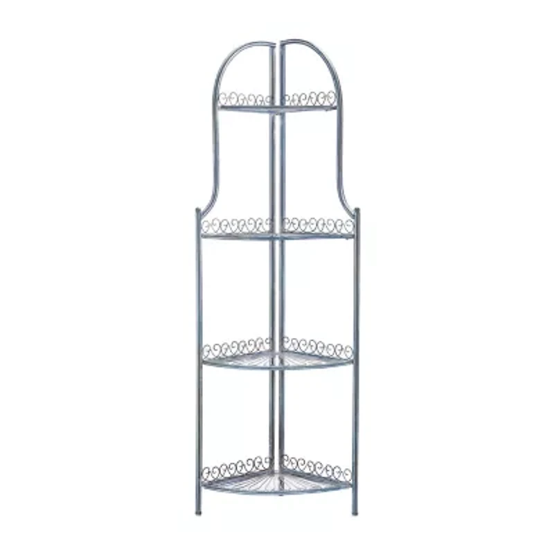 This abarrane outdoor corner shelf takes its inspiration from French patisseries, boasting four tiers with flourishing wrought iron details. Abarrane the look of a well-loved heirloom, while its wire shelves provide display or storage in any outdoor area.