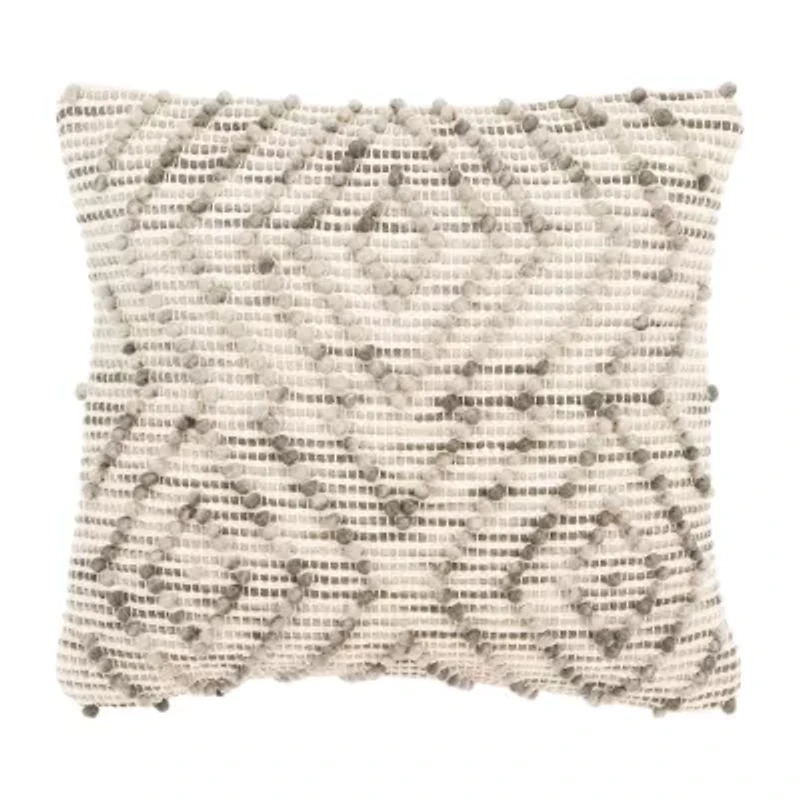 Give your decor a cozy finishing touch with this boho-chic Adalia pillow. Adalia's wool-cotton yarns are delightfully soft to the touch, highlighting its concentric diamond patterns in knit puff stitches.