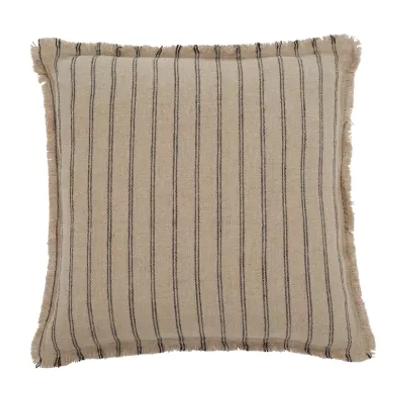 Embrace the simplicity and elegance of the Arden pillow. Its linear design is perfect for adding a subtle yet striking visual interest to your room. This linen pillow, thoughtfully crafted in a square shape, exemplifies a blend of natural and black hues that are sure to complement any decor. The fringes along the edge bring an organic, handcrafted feel, making each pillow unique. Whether you're accentuating your sofa, chair, or bed, this pillow will bring an understated sophistication that is effortlessly chic.