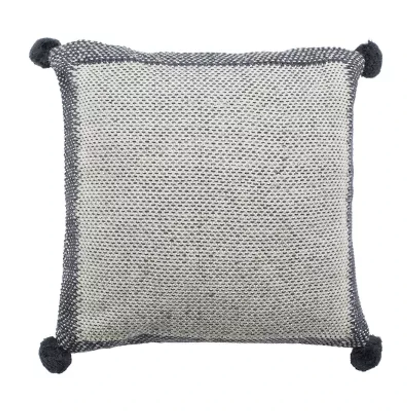 Glistening with the same the glow as the stars in the night sky, the dazzling safavieh Dania knit pillow instantly transforms a bland interior into a contemporary haven. A diva in any living room or bedroom, its bold playful pom pom tassels make a beguiling first impression, while its dark grey hue creates a dramatic canvas for its extremely soft cotton knit center