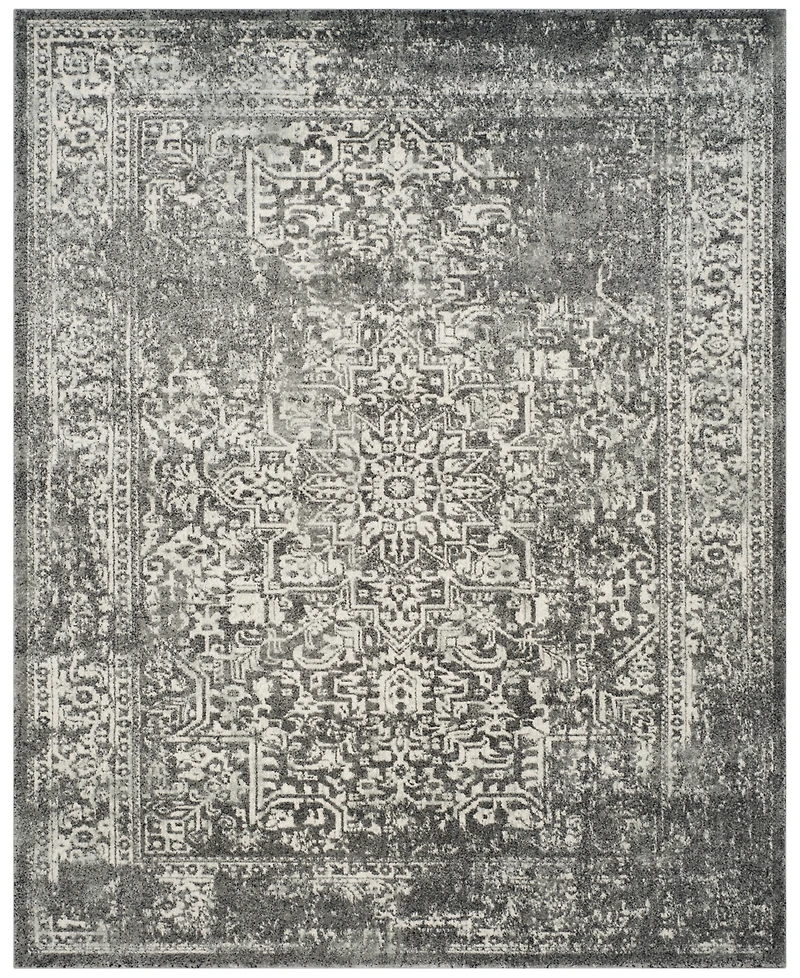 Stunning centuries-old Persian-inspired floral and geometric motifs in a soft ivory hue glow on the crisp gray ground of this elegant and timeless thick pile Evoke EVK256D area rug from Safavieh.