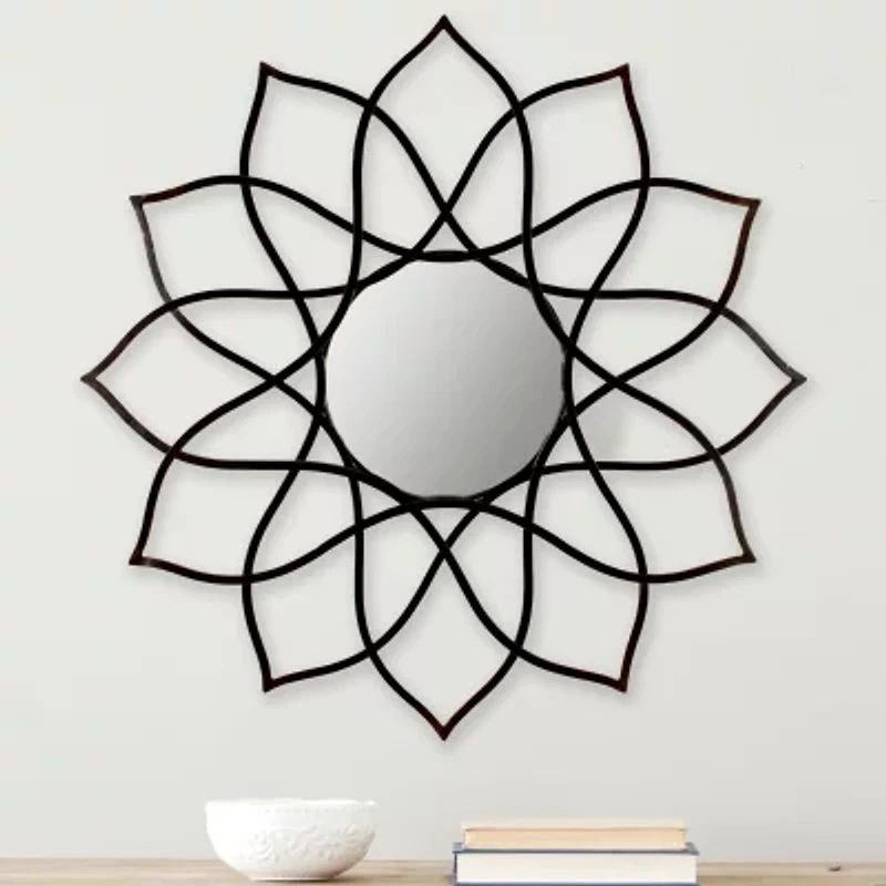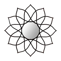 Add modern flower power and a clean look to any room. The finish on this contemporary mirror highlights the organic geometry of its artfully hand wrought iron frame. Ideal for any room in need of aesthetic ambiance. Bring artistic dimension to home furnishings with this ideal accent piece that complements and blends perfectly with any home decor. This would be a great addition that elevates your home whether it be in the countryside or busy city.