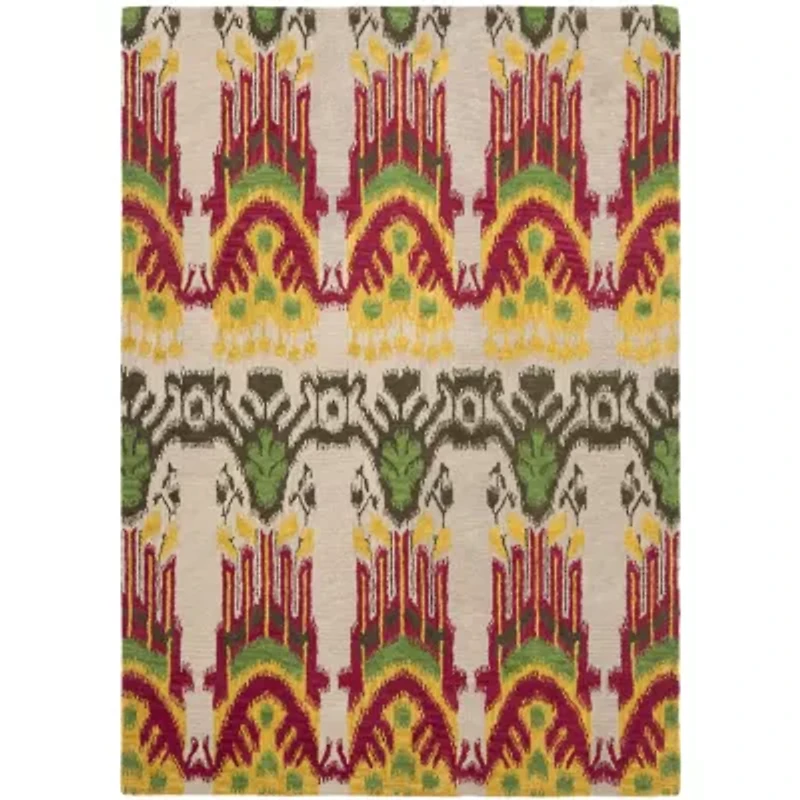 Globally Inspired, The Ikat Collection By Safavieh Creates A New Spin On Traditional Tie-Dyeing Techniques Used For Centuries By Silk Road Weavers. From Playful To Sophisticated, The Luxurious And Colorful Designs Are Hand-Tufted Of Pure Wool For Exotic Glamour. This Is A Great Addition To Your Home Whether In The Country Side Or Busy City.