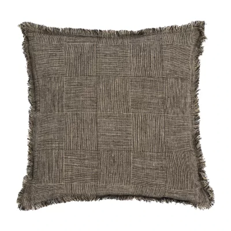 Elevate your home decor with the terra pillow. This stylish pillow, fashioned in a charming black and natural colorway, exudes elegance and sophistication. Its square form and plush linen material offer both comfort and aesthetic appeal, making it a versatile addition to any room. The intricately textured pattern and tactile finish, complete with playful fringed edges, infuse a sense of artisanal craftsmanship into your living space. Whether adorning a sofa, chair, or bed, this pillow is designed to seamlessly meld with a myriad of design palettes, adding a touch of finesse wherever it's placed.