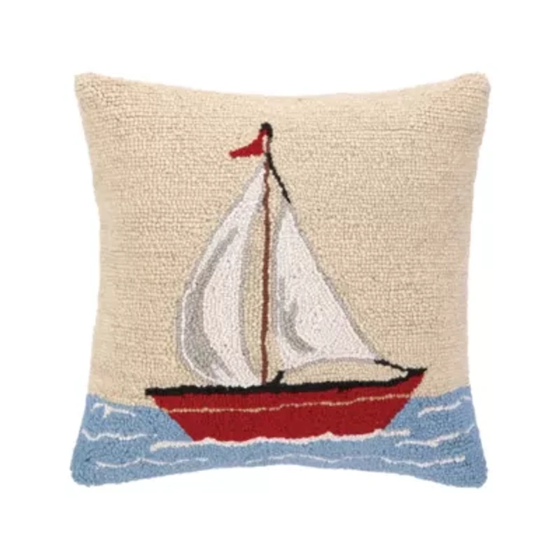 Bring a nautical touch to your home with this charming 16" square pillow, showcasing a classic sailboat motif. The hand-hooked 100% wool face provides texture and dimension, bringing the tranquil scene to life. Complemented by a soft, solid polyester velvet back, this pillow is both comfortable and stylish. With a removable polyester insert and a convenient zipper closure, it’s easy to care for and maintain. Perfect for coastal or lake-themed spaces, this pillow adds a whimsical, maritime feel to any room. Novelty Imported Product Specifications 16"W x 16"L Material & Care Polyester Wool Dry clean only