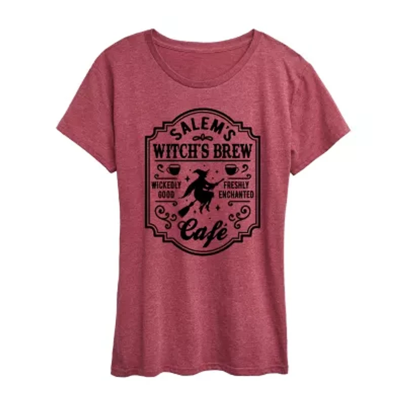 Salems Witch Brew Cafe Womens Crew Neck Short Sleeve Regular Fit Graphic T-Shirt