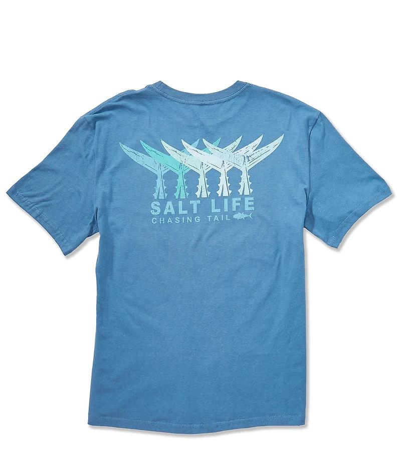 From Salt Life, this t-shirt features: Crew neckline Short sleeves "Salt Life" logo on the front Colorful fishtail graphic with "Salt Life" logo and "Chasing Tails" verbiage on the back Pullover construction Classic fit Preshrunk ringspun jersey cotton Machine wash/tumble dry Imported.
