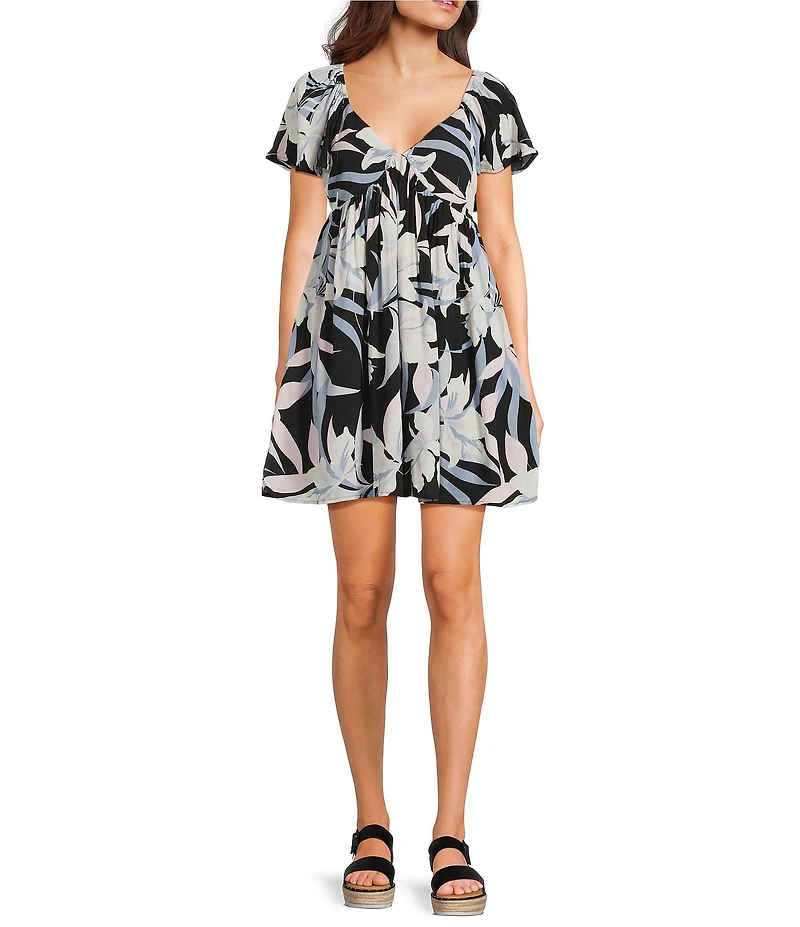 Salty Crew Dreamland Flutter Sleeve Printed Mini Dress