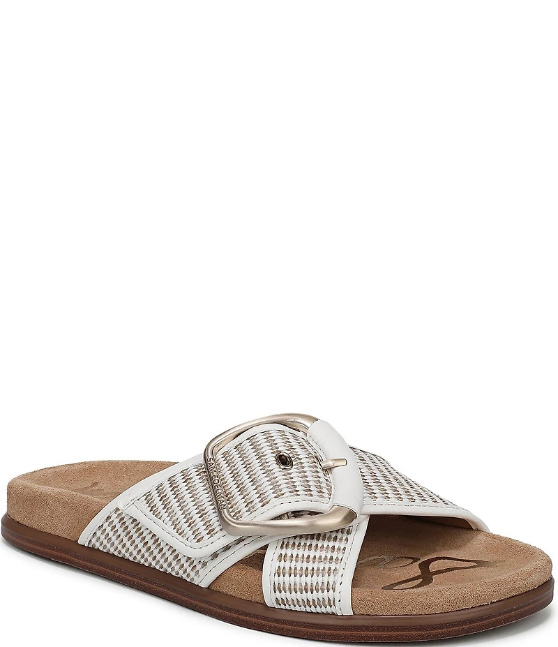 Sam Edelman Darla Raffia Stripe Criss Cross Buckle Hardware Slide Sandals