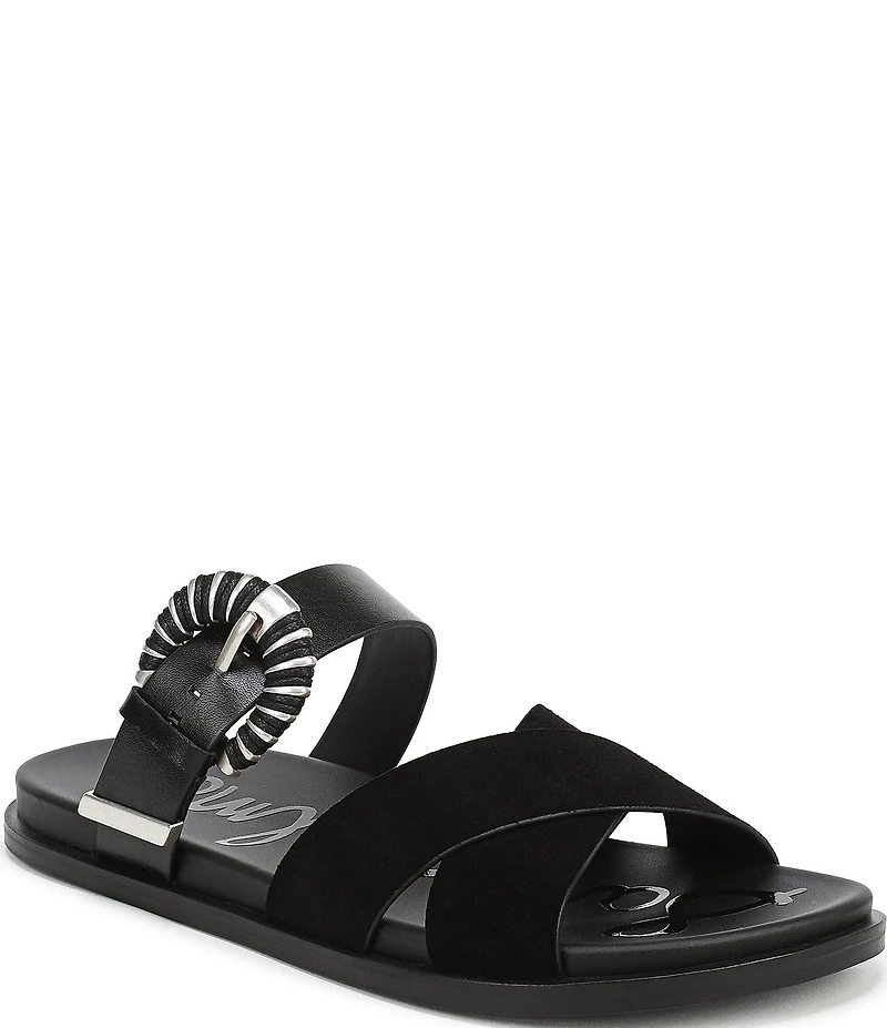 Sam Edelman Lucy Suede and Leather Criss Cross Buckle Hardware Slide Sandals