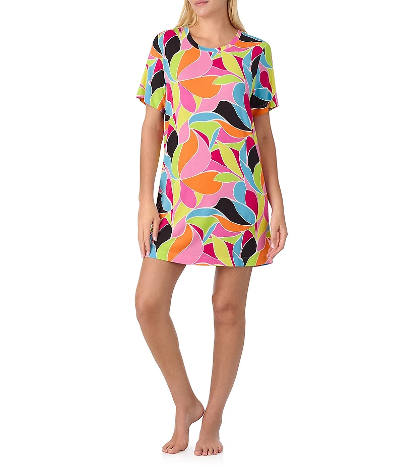 Sanctuary Geo Print Short Sleeve Round Knit Sleepshirt