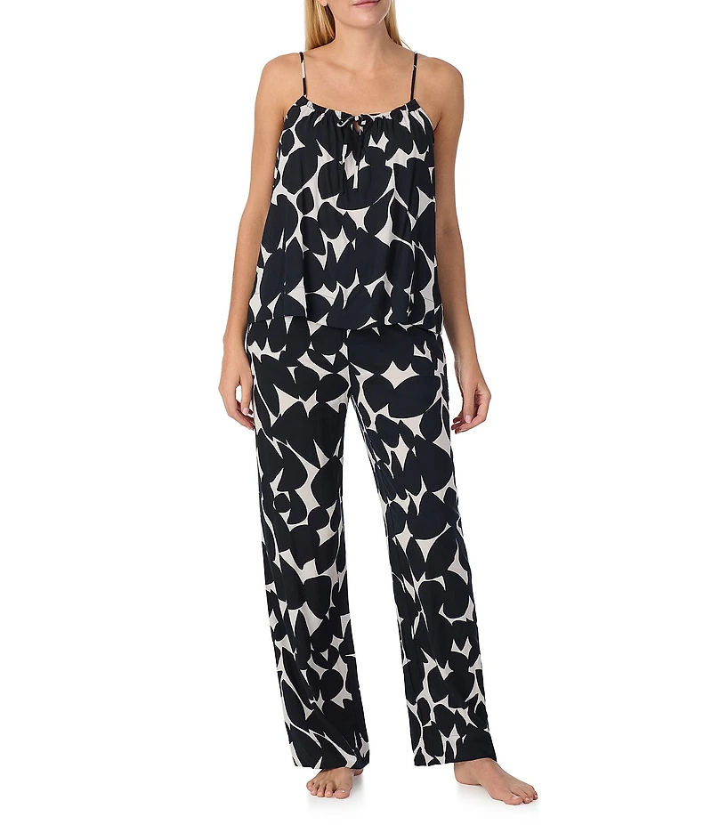 From Sanctuary, this pajama set features: Top: Geo print Woven fabrication Round neckline with tie closure Sleeveless Adjustable straps Pullover construction Rayon Machine wash cold/tumble dry low Bottom: Floral print Woven fabrication Elastic waistband Side pockets Pull-on construction Approx. 31" inseam Rayon Machine wash cold/tumble dry low Imported.