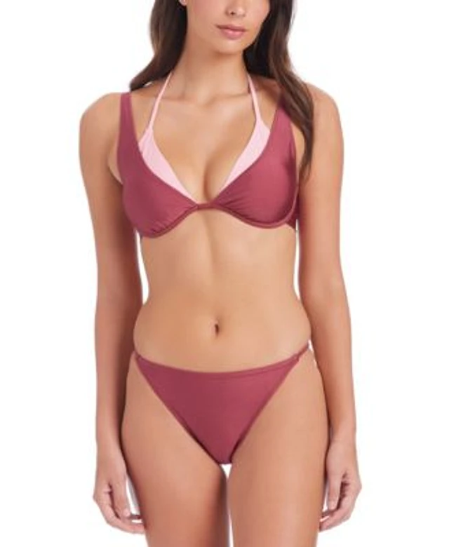 Sanctuary Womens Twice As Nice Double Layer Tied Bikini Top Strappy Hipster Bikini Bottoms